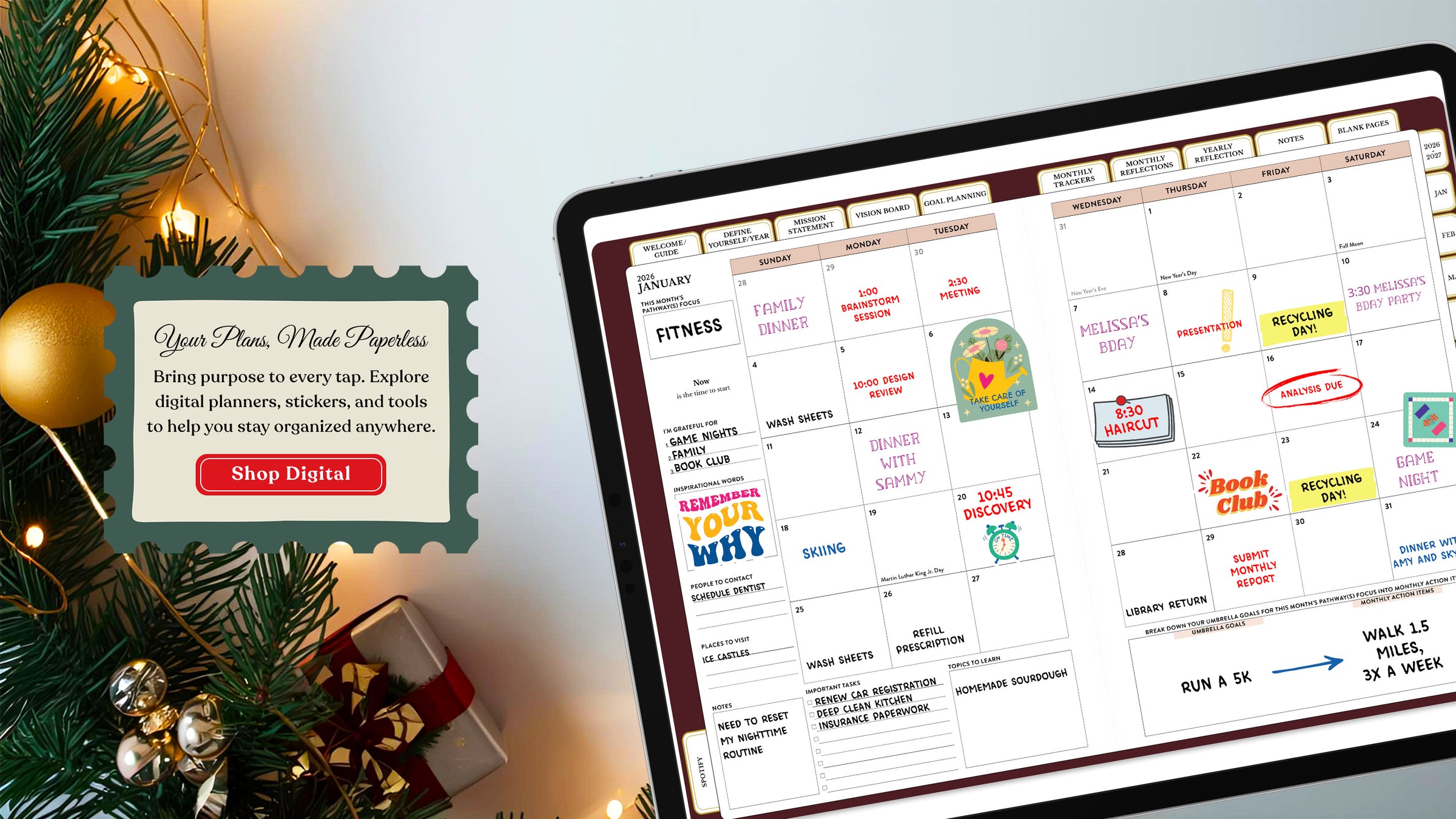 Step into our Digital Shop and explore a world of planners, stickers, and more—designed to help you stay organized, inspired, and on track. From goal-setting to daily planning, find the perfect digital tools to navigate each day with purpose