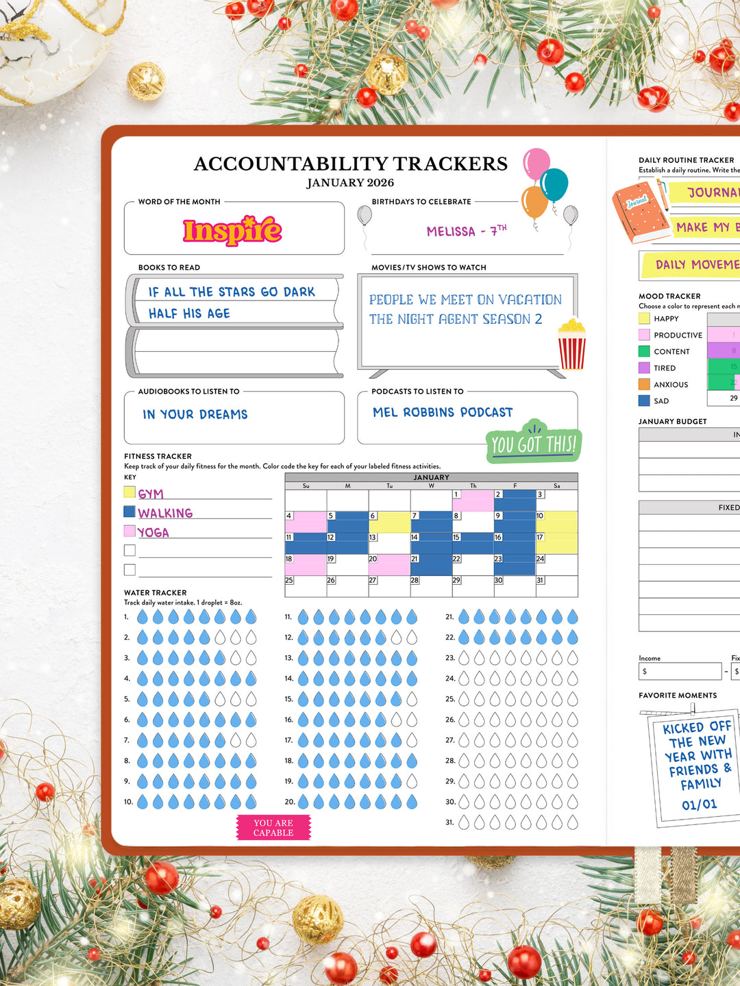 Stay on track with 12 monthly accountability trackers designed to help you build habits, monitor progress, and remain consistent all year.